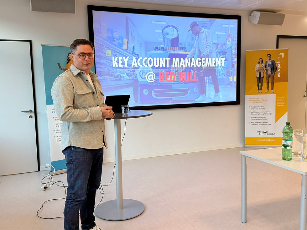 On Friday, 28 November, we were delighted to welcome back Christoph Mayr, Global Head of Off Premise at Red Bull and a former Euroclass student. He visited our Europa HAK to talk to 3EK and 4EK about Key Account Management.